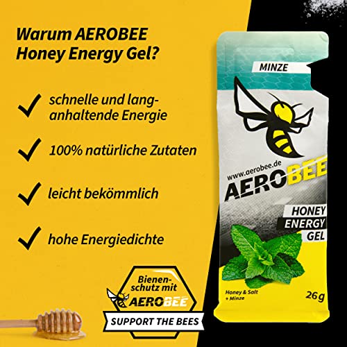 AEROBEE Energy Gel Classic – Minze 10 x 26g [100% Natürliches Energie aus Honig] richtig leckeres Sportgel für den Ausdauersport, Energy Gel Laufen, Power Sport, Sportnahrung