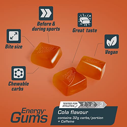 VERZEHREMPFEHLUNG – 1 Portion (6 Gums, 45 g) vor dem Sport oder alle 30 Minuten während des Sports. Ausreichend Flüssigkeit konsumieren. Maximal 4 Portionen pro Tag. Zur Verwendung bei sportlicher Aktivität.