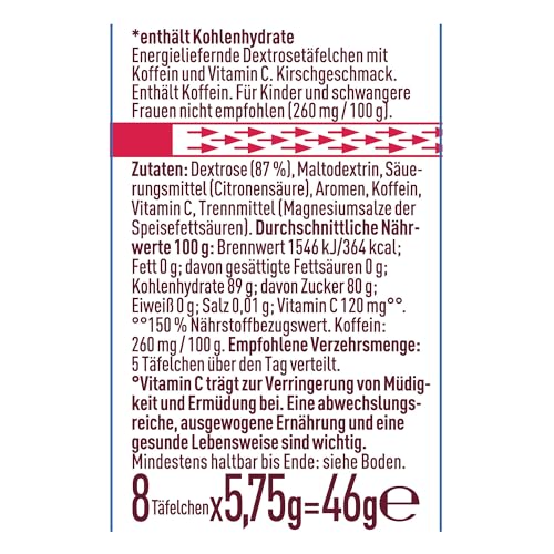 Noch fünf Minuten, bis die Gäste kommen, noch eine Matheformel lösen, noch einmal alles geben: Unsere Traubenzuckerwürfel versorgen dich schnell mit kurzkettigen Kohlenhydraten, wenn es dir drauf ankommt! Diese Kohlenhydrate gehen sofort ins Blut und gelangen von dort dahin, wo es zählt – ins Gehirn und deine Muskeln. Praktisch: Bei uns kannst du deinen Traubenzucker im Würfel einzeln verpackt kaufen, die einzelnen Traubenzuckertabletten kannst du dann sogar nochmal halbieren. Ob für die Arbeit, beim Lernen oder im Alltag: Würfel von Dextro Energy* sind da, wenn du abliefern willst.
