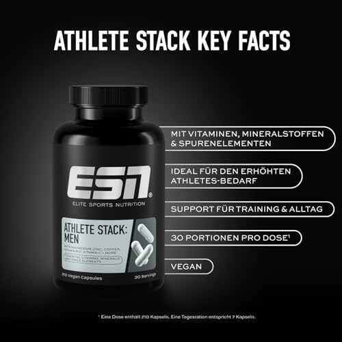 HomeSportnahrungESN Athlete Stack Men 2.0, 210 Kapseln, alle essentiellen Vitamine und Mineralstoffe, vegan – Made in Germany
