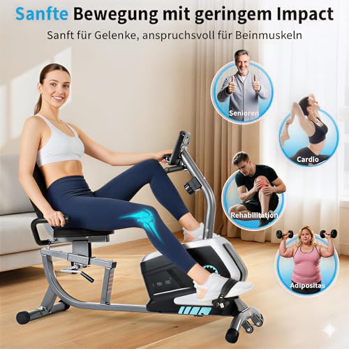 ISE Liegeergometer für Zuhause mit 8 verstellbaren Widerstandsstufen, Ergometer Liege- Heimtrainer mit Magnetbremse, Heimtrainer Fahrrad mit Pulssensoren und LCD-Display,Indoor Bike mit Rückenlehne