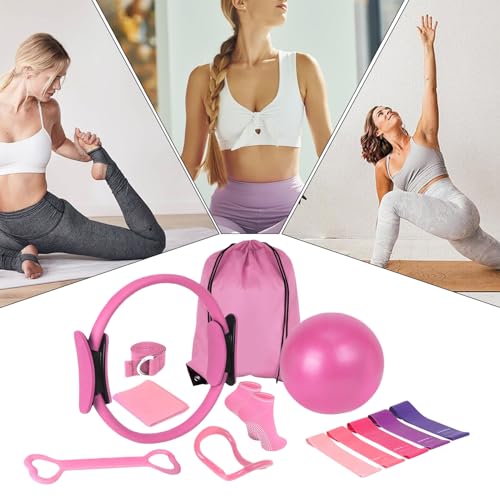 Pilates Set Damen – 13-teilig für Zuhause, Mit 38cm Pilates Ring & 25cm Ball, Inklusive Widerstandsbänder, Kompaktes Home Gym Equipment | Für Krafttraining, Körperstraffung, Tägliches Workout