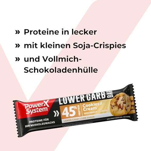 HomeSportnahrungPower System Lower Carb Bar Cookies & Cream 45% Eiweiß 12 Protein-Riegel Low Sugar, Low Carb