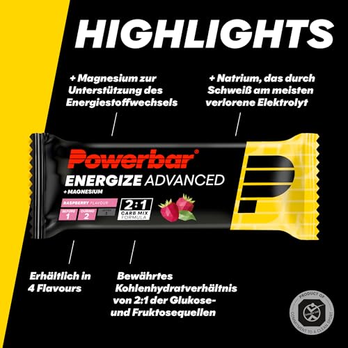 Auf Deinem Weg zu neuen persönlichen Bestleistungen verzichtest Du auf viel – zumindest bei der Ernährung im Training oder Wettkampf muss das nicht so sein. Der ENERGIZE Advanced ist der Energieriegel von Powerbar. Einfach lecker und mit einer optimalen Textur hast Du absoluten Genuss mit jedem Biss. Er versorgt dich mit hochwertigen Kohlenhydraten im Kohlenhydrat-Verhältnis von 2:1 der Glukose- und Fruktosequellen und unterstützt den Mineralienhaushalt mit Natrium und Magnesium. Probiere jetzt den Powerbar ENERGIZE Advanced in vier aufregenden Geschmacksrichtungen! Alle Powerbar Produkte sind zusätzlich auf der Kölner Liste® aufgeführt, dadurch bieten wir den Athleten noch mehr Sicherheit und Vertrauen.